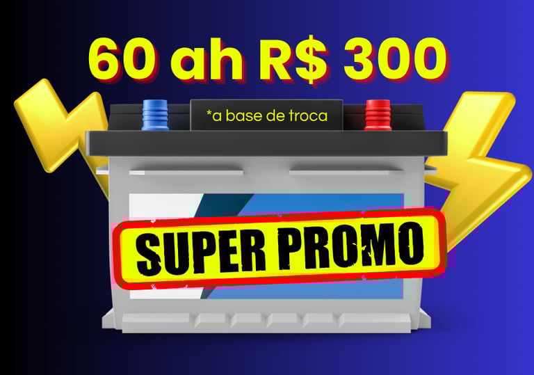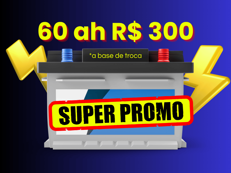 Bateria 60Ah – Apenas R$300, com 1 ano de garantia (base de troca).