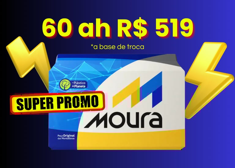Bateria Moura 60 ah, apenas R$ 519